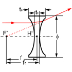 Double-concave lens has a negative focal length and is useful for 1:1 imaging and in multielement systems. also known as biconcave or equiconcave.